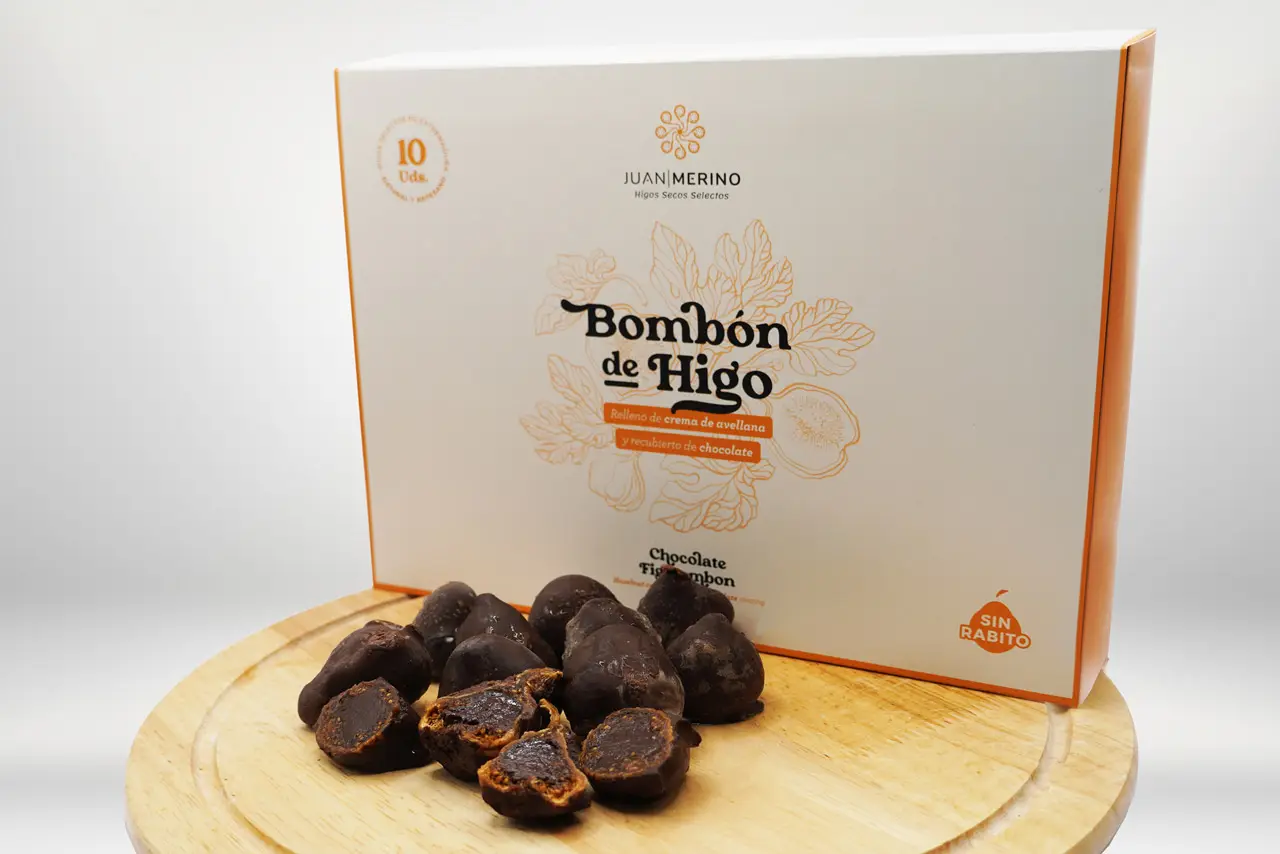 Bombón de Higo sin rabito, relleno Cacao y Avellana. Caja 200 g